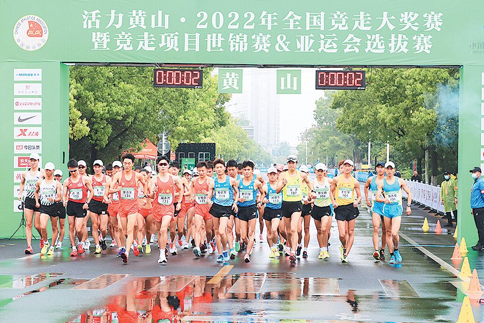 本次比赛是全国竞走大奖赛第一站暨竞走项目世锦赛和亚运会选拔赛,采用的是1公里一圈的标准赛道,并进行封闭管理。这也是黄山市第9次举办全国性竞走大赛。当天虽下起了蒙蒙细雨,但比赛依旧照常进行,共有来自全国14支代表队近百名运动员在秀美的新安江畔冒雨参赛,激烈角逐。最终,山东选手马振霞获得女子20公里竞走、35公里竞走冠军;个人参赛选手许皓获得男子35公里竞走冠军;山西选手温永杰获得男子20公里竞走冠军。(樊成柱 文/图)
