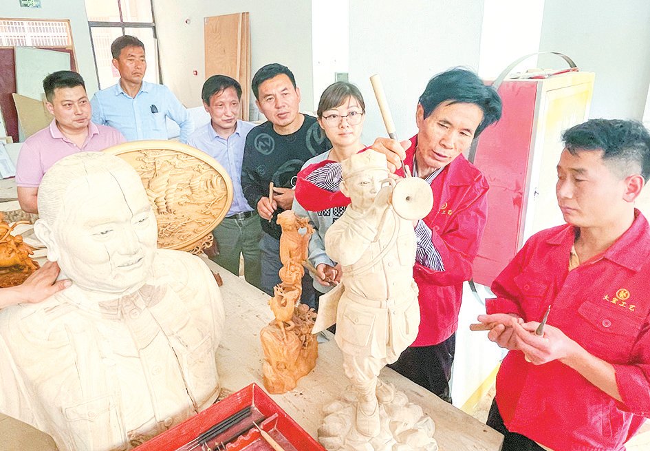 “让冰冷的木头活起来,我们在雕刻时,不光要刻型,也要刻魂!”安徽工艺美术大师刘大宏对传承人说。4月23日,在合肥大宏木雕工艺品艺术馆,宫式木雕彩绘贴金第四代传人刘大宏正在对10多名传承人进行培训。