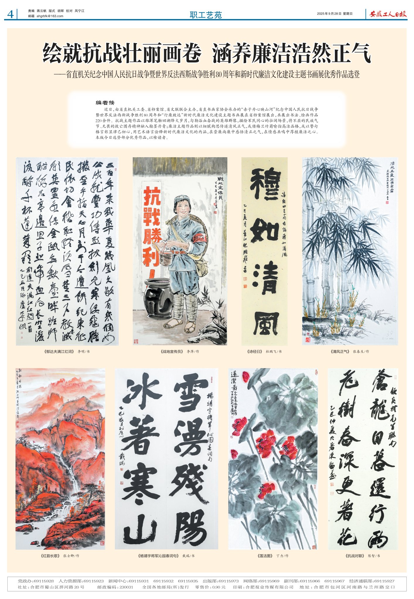 摘要:编者按近日,由省直机关工委、省档案馆、省文联联合主办,省直书画家协会承办的“赤子丹心映山河”纪念中国人民抗日战争暨世界反法西斯战争胜利80周年和“行廉致远”新时代廉洁文化建设主题书画展在省档案馆展出,