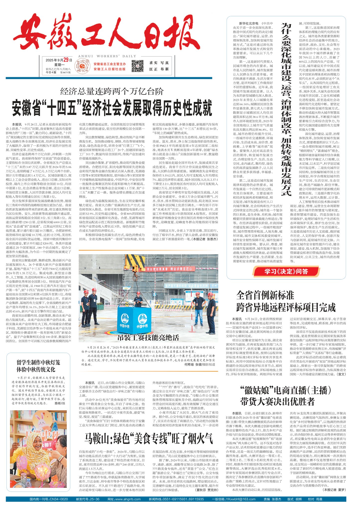 回顾这五年,全省上下攻坚克难、顶压前行,付出了艰辛汗水,拼出了骄人业绩,必将在安徽发展史上留下浓墨重彩的一笔。(本报记者 张恩杰)
