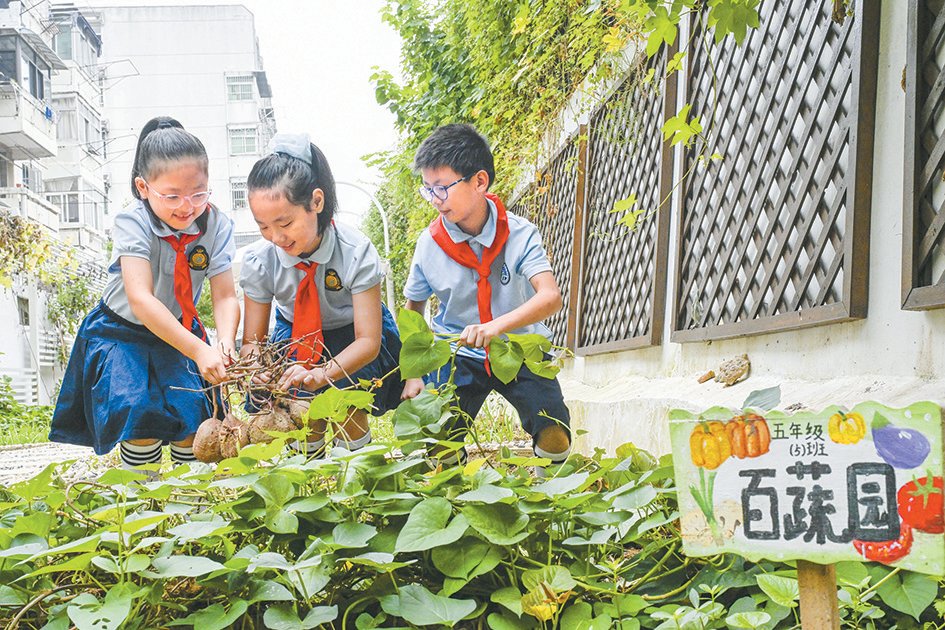 摘要:10月10日,在合肥市庐阳区双岗小学,学生们正在校园农场采摘山芋。金秋时节,双岗小学校园农场山芋迎来丰收,学生们在老师的带领下,采收自己种植的农作物,享受收获的喜悦。赵明/摄