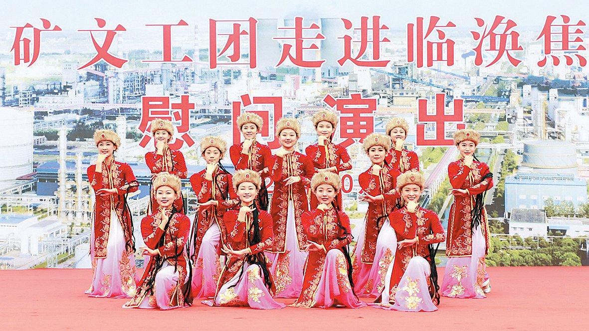 10 月 16 日,中国煤矿文工团走进淮北矿业集团临涣焦化公司进行慰问演出,带来歌曲、舞蹈、魔术、相声等 15 个精彩节目,为临涣焦化公司及周边兄弟单位 400 余名职工奉上文化“盛宴”。图为演出现场。