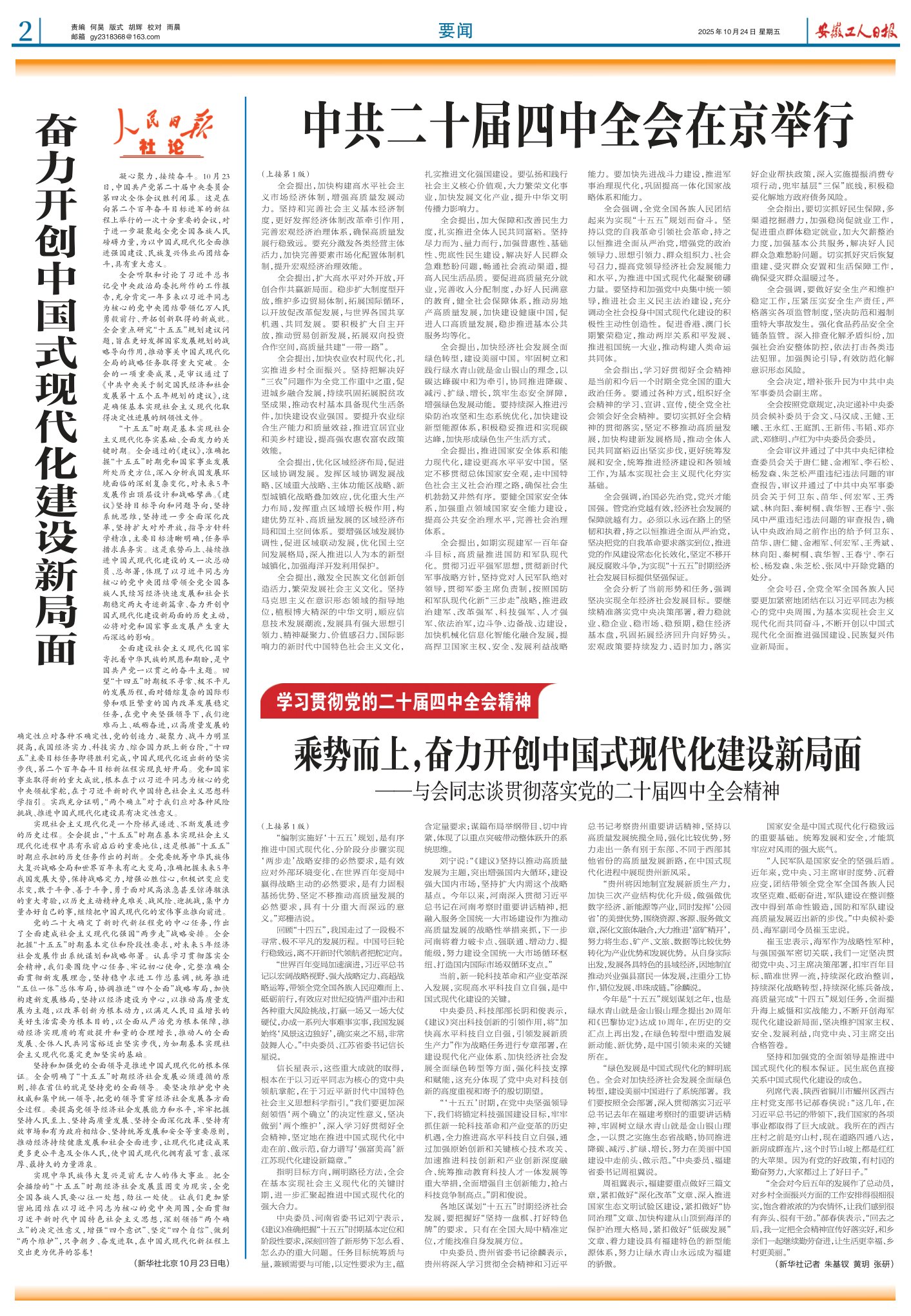 全会强调,全党全国各族人民团结起来为实现“十五五”规划而奋斗。坚持以党的自我革命引领社会革命,持之以恒推进全面从严治党,增强党的政治领导力、思想引领力、群众组织力、社会号召力,提高党领导经济社会发展能力和水平,为推进中国式现代化凝聚磅礴力量。要坚持和加强党中央集中统一领导,推进社会主义民主法治建设,充分调动全社会投身中国式现代化建设的积极性主动性创造性。促进香港、澳门长期繁荣稳定,推动两岸关系和平发展、推进祖国统一大业,推动构建人类命运共同体。