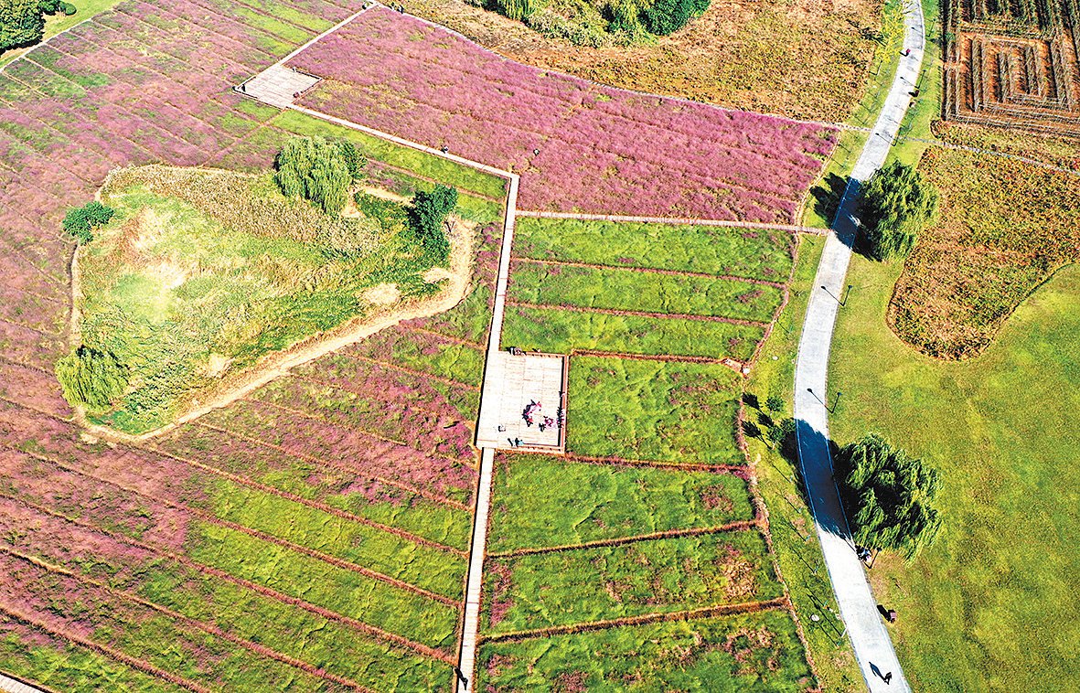10月23日,铜陵市西湖湿地公园色彩斑斓、秋景如画。金秋十月,铜陵市西湖湿地公园秋高气爽,如茵绿草与彩色风车、斑斓花卉相映成趣,宛如一幅美丽的油画,吸引了不少游客前来,享受湿地秋日的美好和惬意。过仕宁/摄