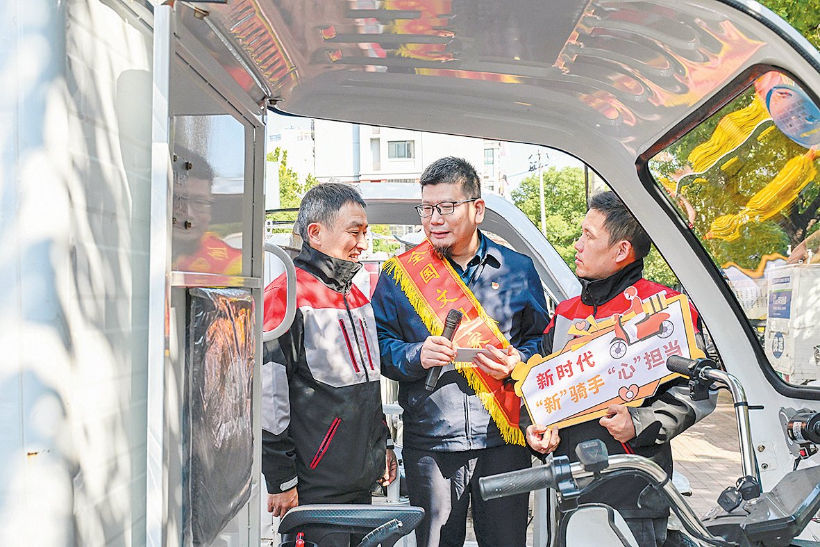 10 月 24 日,合肥市庐阳区海棠街道开展“我爱我家,我爱合肥,礼让文明”先进典型宣讲进社区活动,邀请“全国文明家庭”获得者、“合肥好人”薛敏走进荷塘社区顺丰快递服务站点,为快递小哥进行“微宣讲”,鼓励新就业群体在服务中传递城市温度,在敬业奉献中践行“强国有我”的使命。赵明/摄
