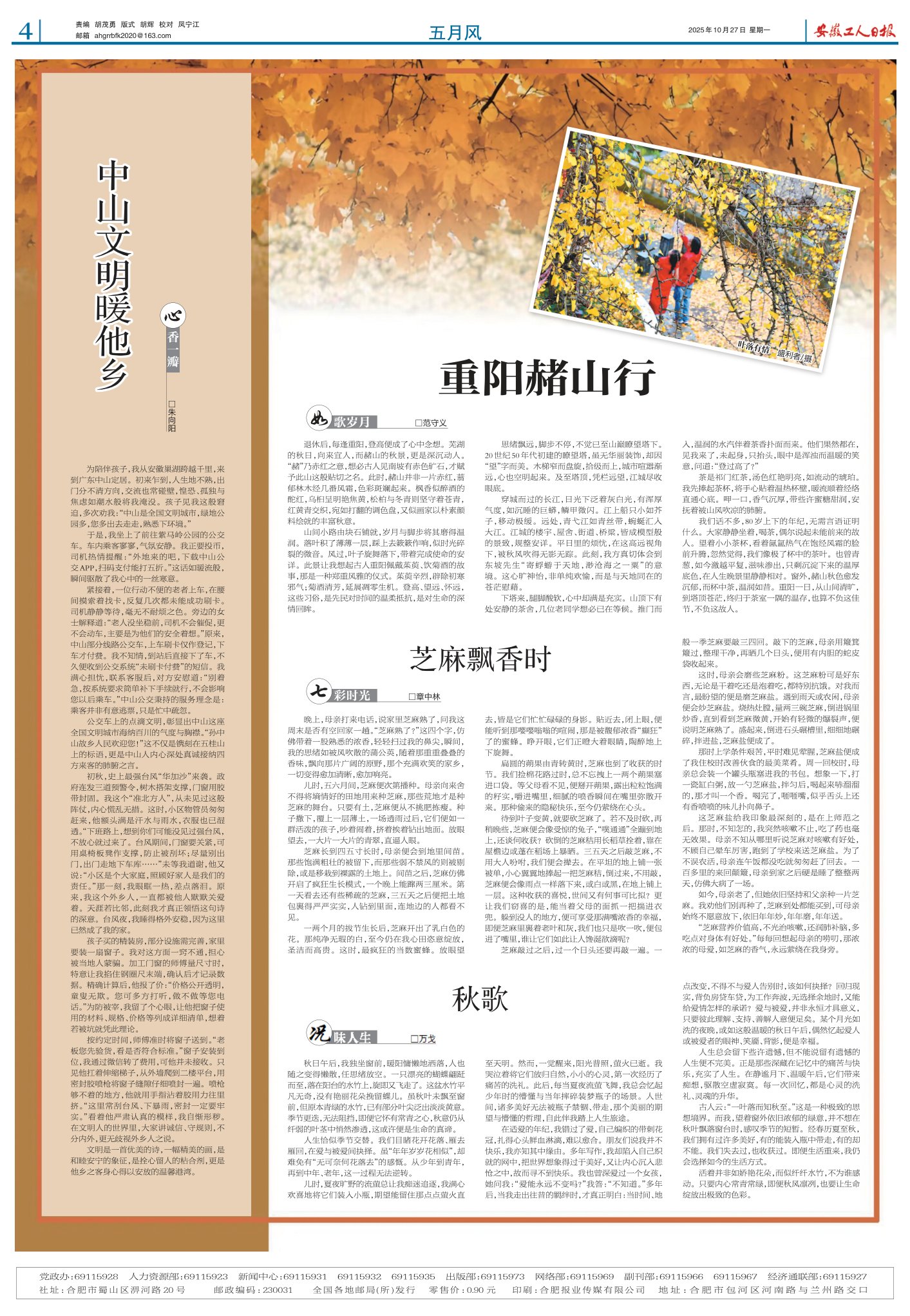 为陪伴孩子,我从安徽巢湖跨越千里,来到广东中山定居。初来乍到,人生地不熟,出门分不清方向,交流也常碰壁,惶恐、孤独与焦虑如潮水般将我淹没。孩子见我这般窘迫,多次劝我:“中山是全国文明城市,绿地公园多,您多出去走走,熟悉下环境。”
