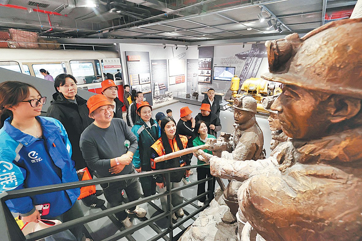 图为新就业形态劳动者在微休养活动上参观城市工业博物馆,感受社会变迁和生活的美好。