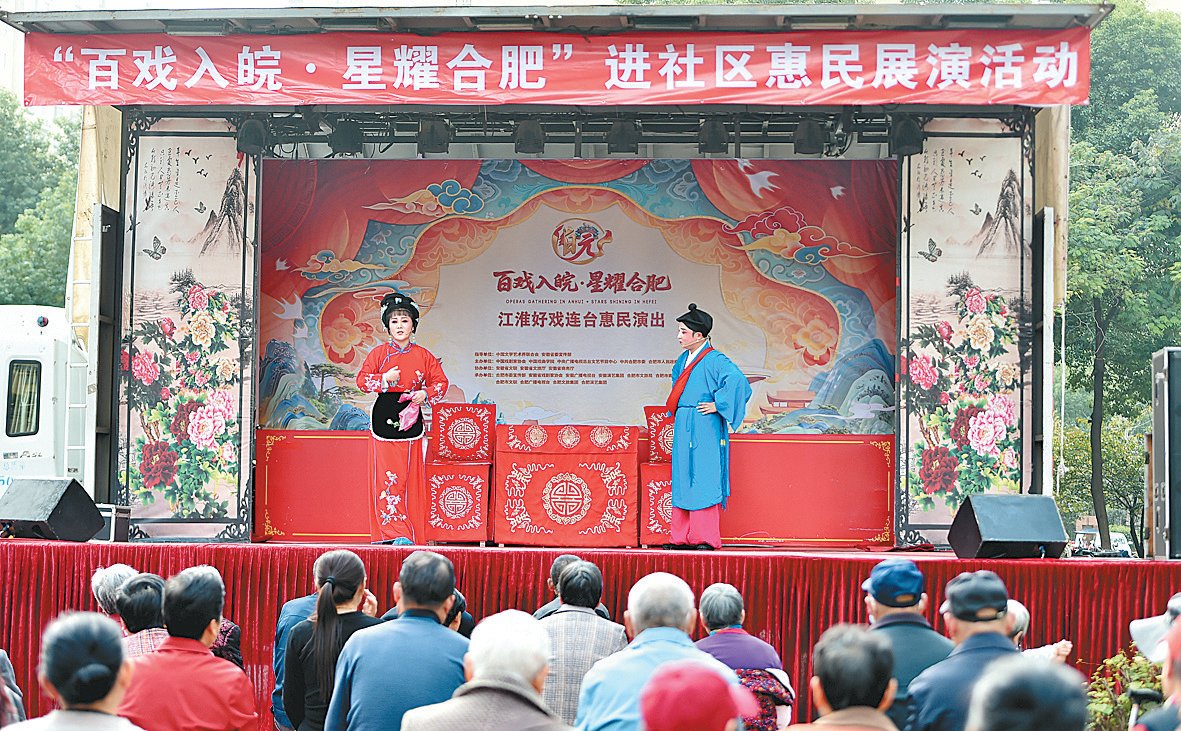 摘要:11月2日,“百戏入皖星耀合肥”进社区惠民展演活动走进合肥庐阳区大杨镇五里拐社区,带来庐剧、黄梅戏等传统戏曲,让居民在家门口享受“文化盛宴”。葛传红吴海燕/摄影报道