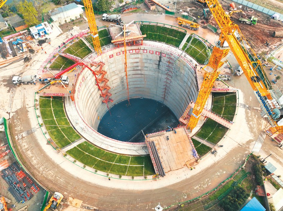 2022 年 12 月 14 日,铜陵长江三桥北锚碇底板开始浇筑。