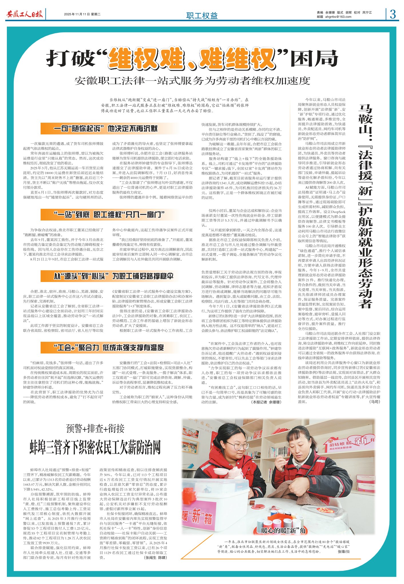 当维权从“跑断腿”变成“进一扇门”,当赔偿从“持久战”缩短为“一日办结”。在安徽,职工法律一站式服务正在打破“维权难、难维权”的困局,它让“怕麻烦”的张师傅成功追回了运费,也让工伤职工董某在一天之内办妥了赔偿。