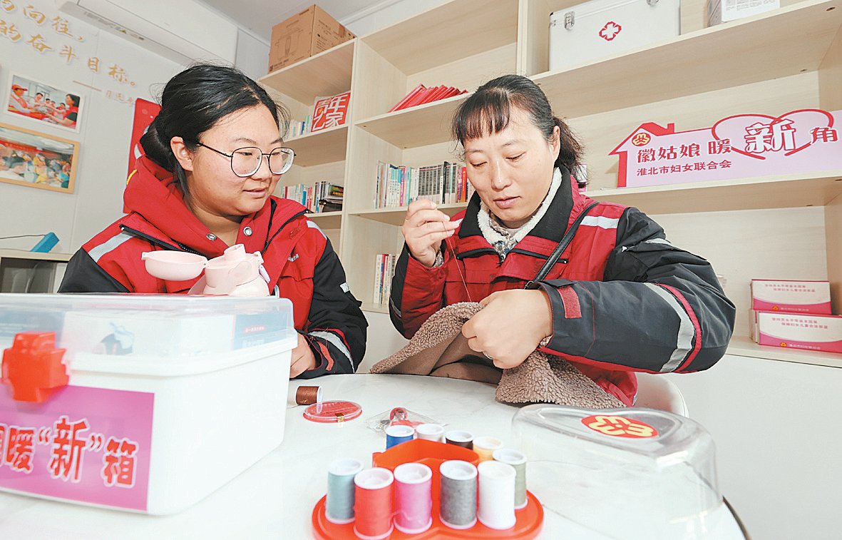 一年来,淮北市妇联聚焦新兴领域女性需求,在全市范围内打造80余个“徽姑娘暖‘新’角”,配备女性用品、针线包、药具、生活必备品等,提供“歇脚地”“充电站”“暖心家”等便捷、贴心的公共服务,切实解决她们在工作、生活中的急难愁盼。张锋/摄
