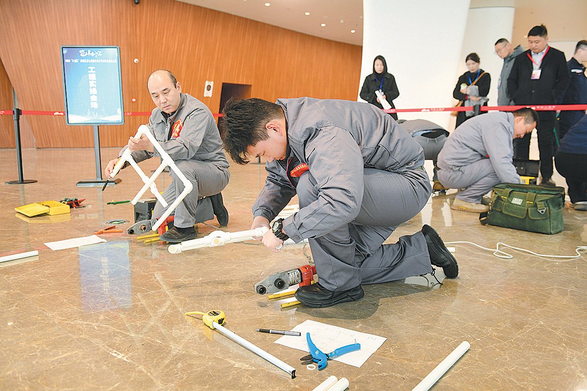 11 月 20 日,参赛选手在阜阳市颍州区第七届物业服务行业职业技能大赛现场进行物业工程实操项目比赛。